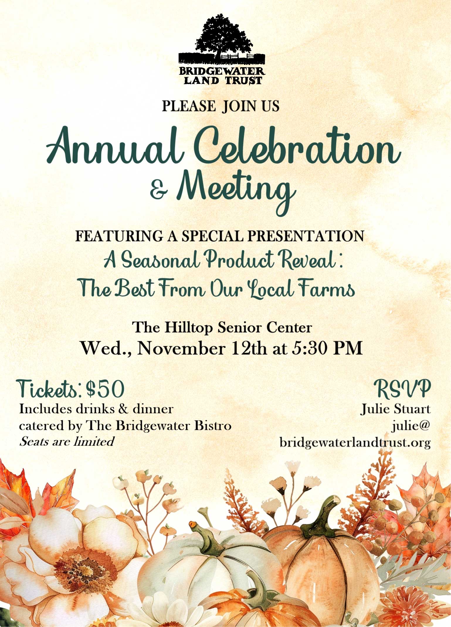 but would like to contribute to the Bridgewater Land Trust? Do you want to add an additional contribution to your ticket purchase?